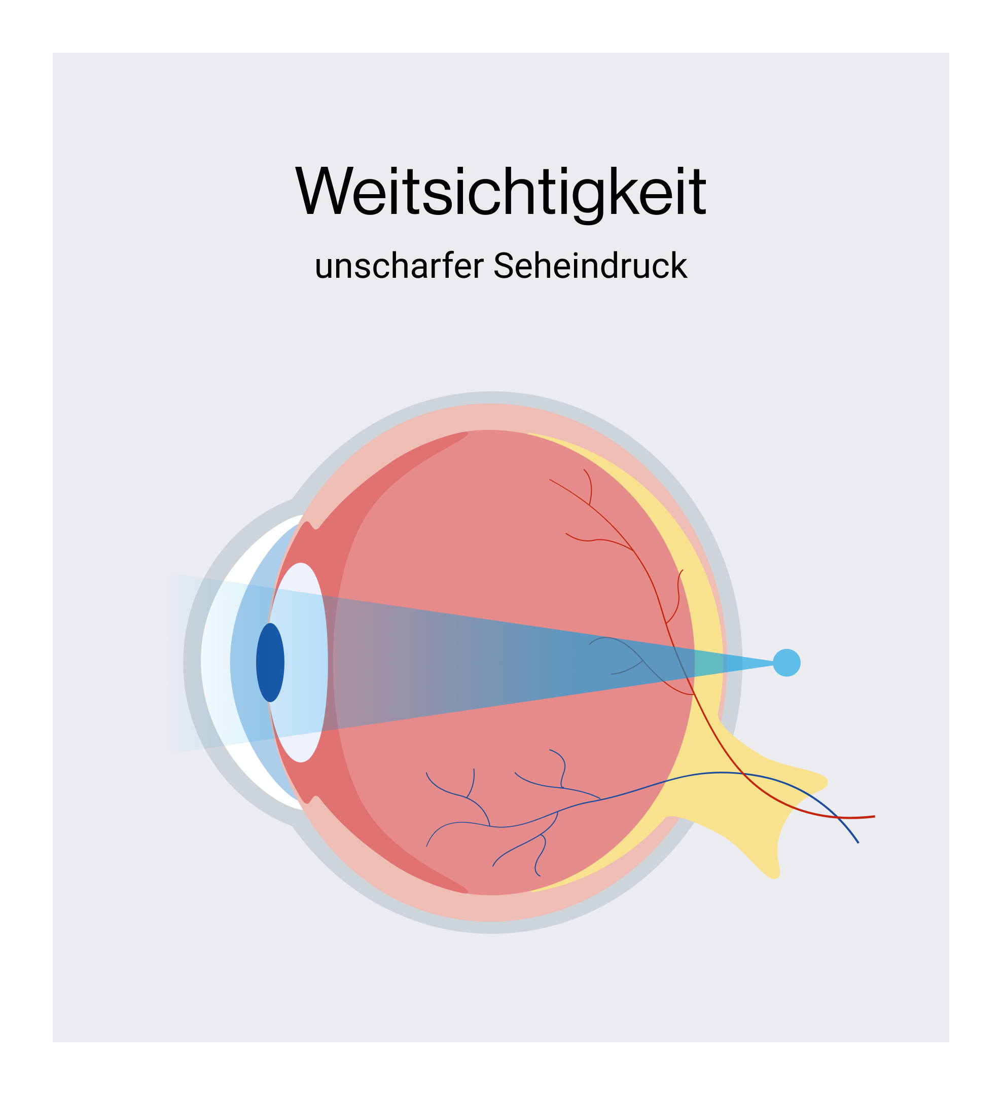 Das hat zur Folge, dass nahe gelegene Gegenstände unscharf erscheinen: Das Sehvermögen ist eingeschränkt.